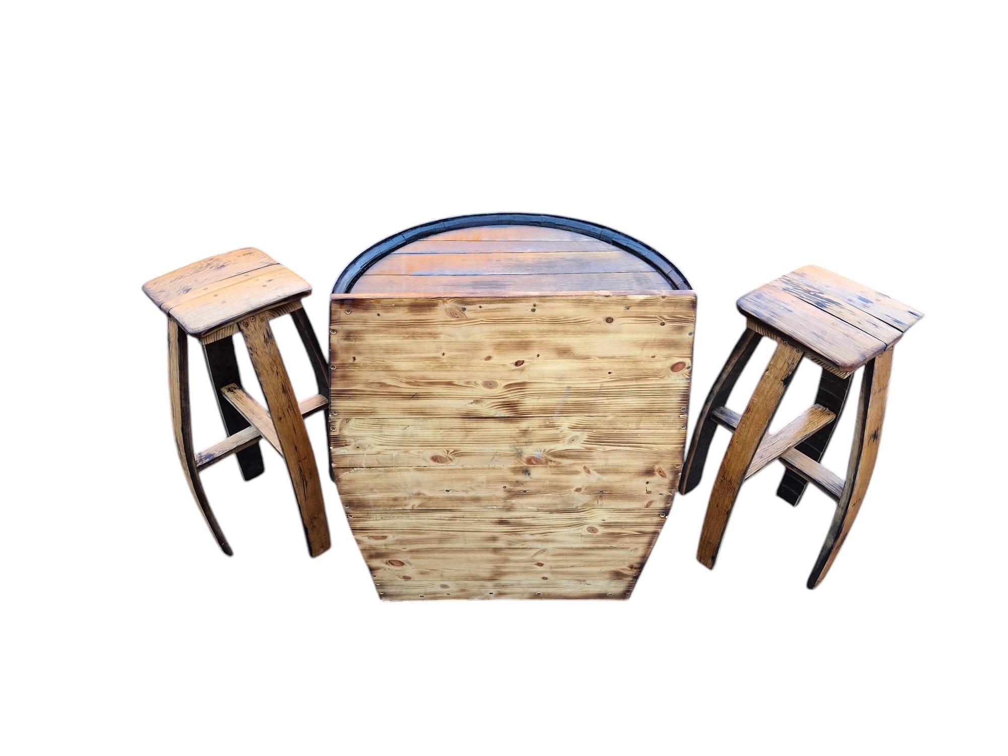 This set is designed for those who appreciate craftsmanship and versatility. It combines functional storage, comfortable seating, and the distinctive character of reclaimed oak barrels—built to last and easy to maintain.
