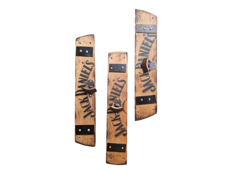 Complete your home bar setup with this Handcrafted Wall Mounted Bottle Opener. Made from a single oak stave taken from a reclaimed whiskey barrel, this piece showcases the wood’s natural curve and rich patina, turning a simple tool into a stylish statement piece.